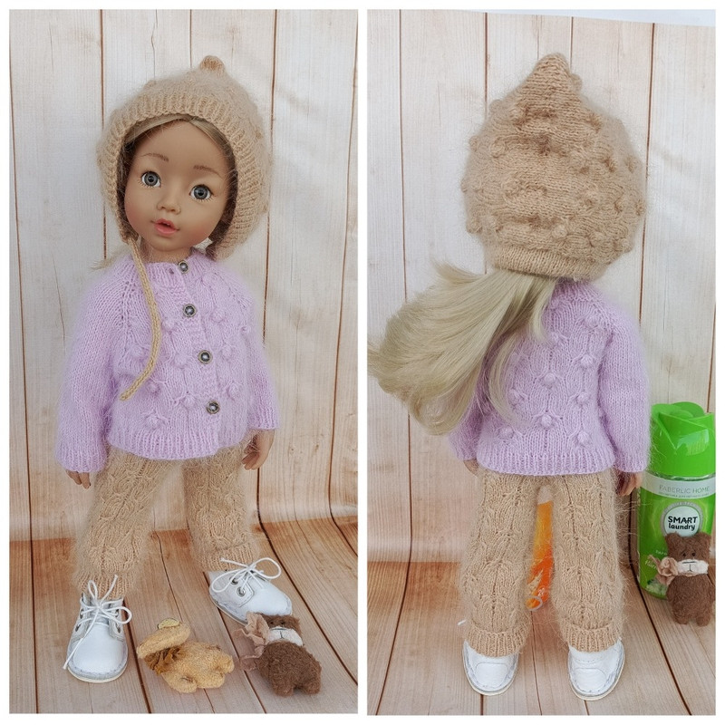 Комплект состоит из кофточки распашной, на пуговках, с узором на деталях переда и спинки, штанишек с тем же узором, что и на кофточке, только без шишечек, с широкими манжетами и поясом, и шапочки-капора с узором ка на кофточке. Нам потребуются: пряжа-Пух норки- 90% пух норки, 10% ПЭ, 350м/50г Из Китайского Пуха норки я вяжу в одну нить и без доп.нити, Также, можно использовать-Color City LETTO 75% хлопок, 25% микрофибра, 350 м, 50 г или YarnArt Cotton Soft 55% хлопок, 45% полиакрил, 600 м, 100 г. спицы-1.25, чулочные Подробные, порядные описания, сопровождающиеся фото промежуточных этапов и схемой узора. Мастер-класс в формате pdf файла. Видео нет.